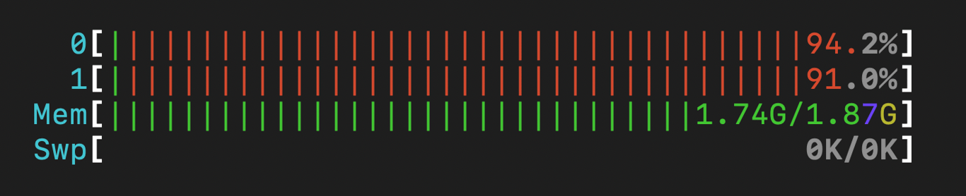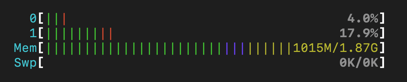 Here's a snapshot taken with htop of system resource usage with all 13 services running (I use a US based Hetzner VPS with 2GB RAM for closer to $5/mo):