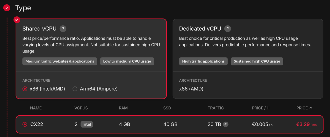 At the time of writing this post, Hetzner offers a VPS with 4GB RAM for €3.29/mo. You should only need about 2GB RAM, so this will be more than enough. If you want something US based, there are 2GB options that are slightly more expensive (this is what I use).